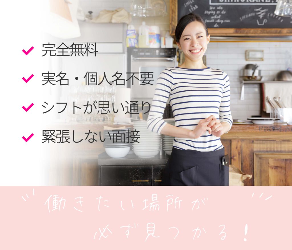 ジョブリクは、名前等の個人情報は一切不要です。登録したメールアドレスもお店側には開示されません。